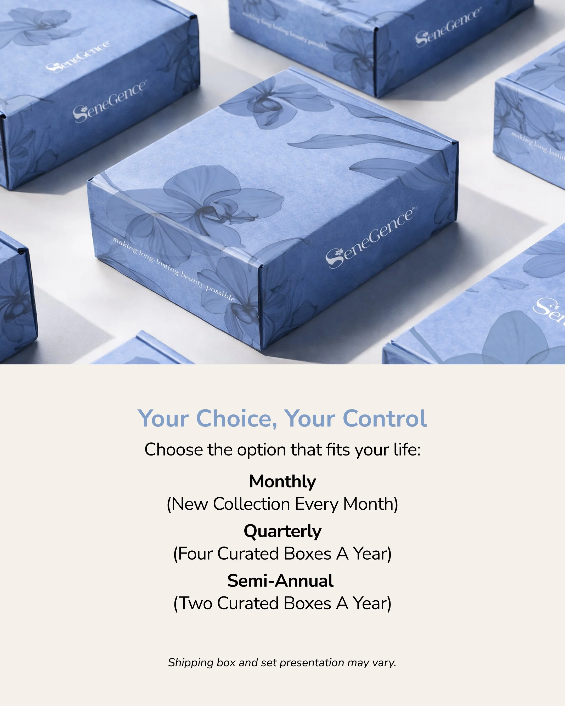 Plus, you aren’t locked into something stressful as you can manage your subscription in your account, cancel before a charge, or contact SeneCare if you need to skip a month.